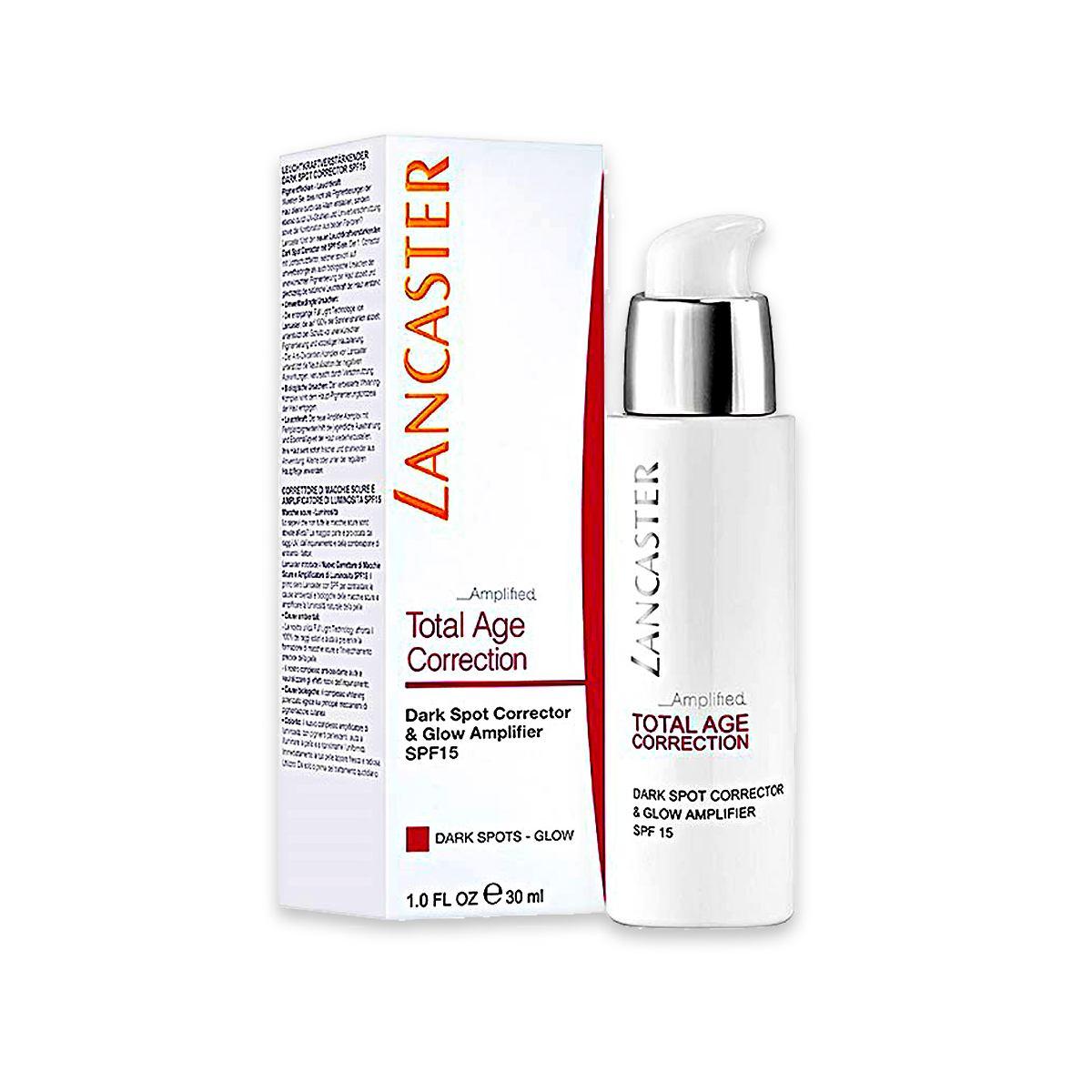 LANCASTER TOTAL AGE CORRECTION DARK SPOT CORRECTOR & GLOW AMPLIFIER SPF15 È UN SIERO VISO CHE AGISCE SIA COME UNIFORMANTE GLOBALE CHE COME ILLUMINANTE. LE MIGLIORI TECNOLOGIE SVILUPPATE DAI LABORATORI LANCASTER SONO CONCENTRATE IN UN UNICO PRODOTTO PER AFFRONTARE TUTTI I SEGNI DELL’INVECCHIAMENTO CUTANEO.Â